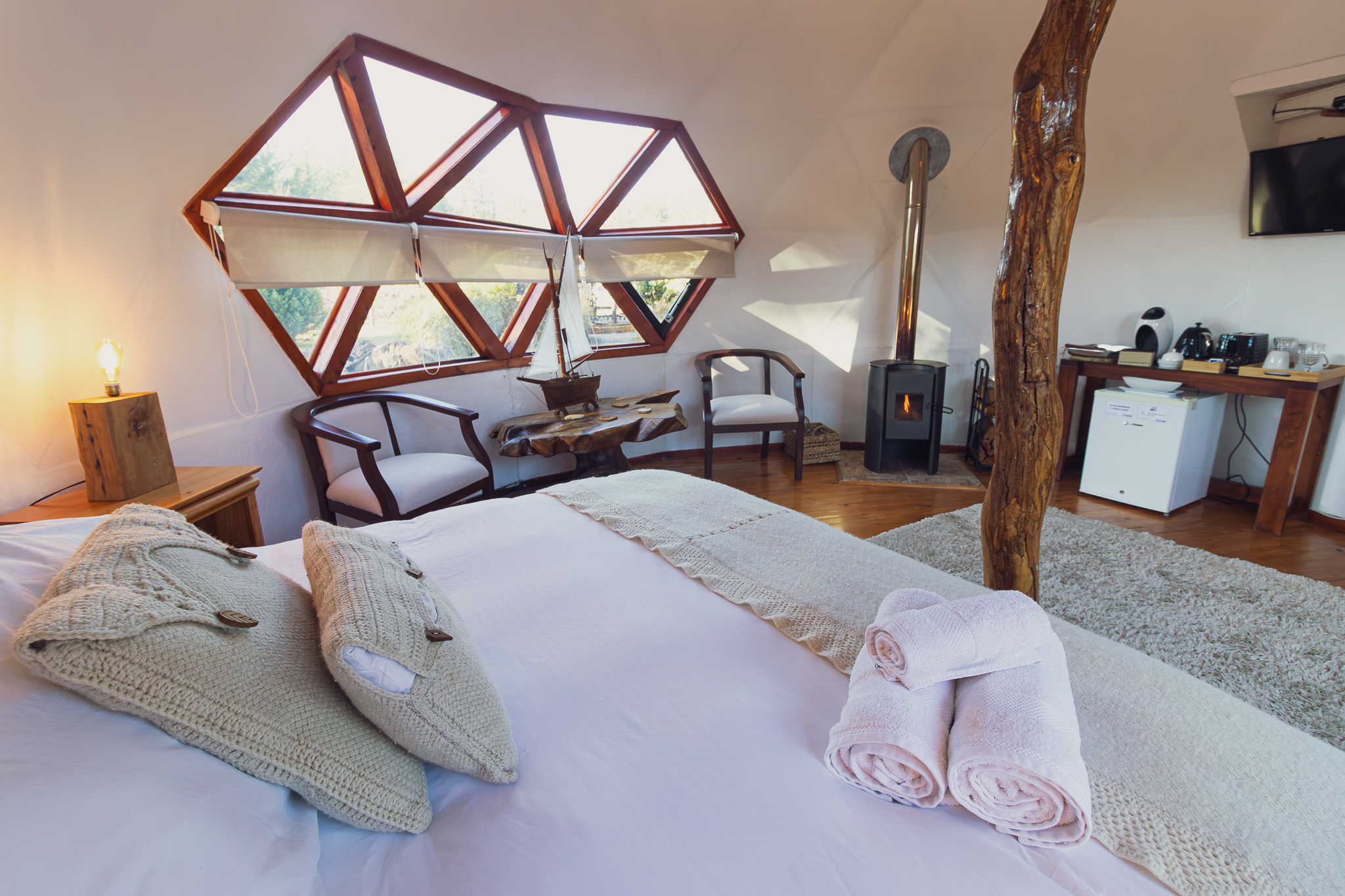Ubicado en parcela de 5.000 m2 con 2 domos en Ensenada (Ruta 225, km 39,5) Puerto Varas, cercanos a la playa, ideal para parejas y quienes buscan desconectarse en un entorno natural único.